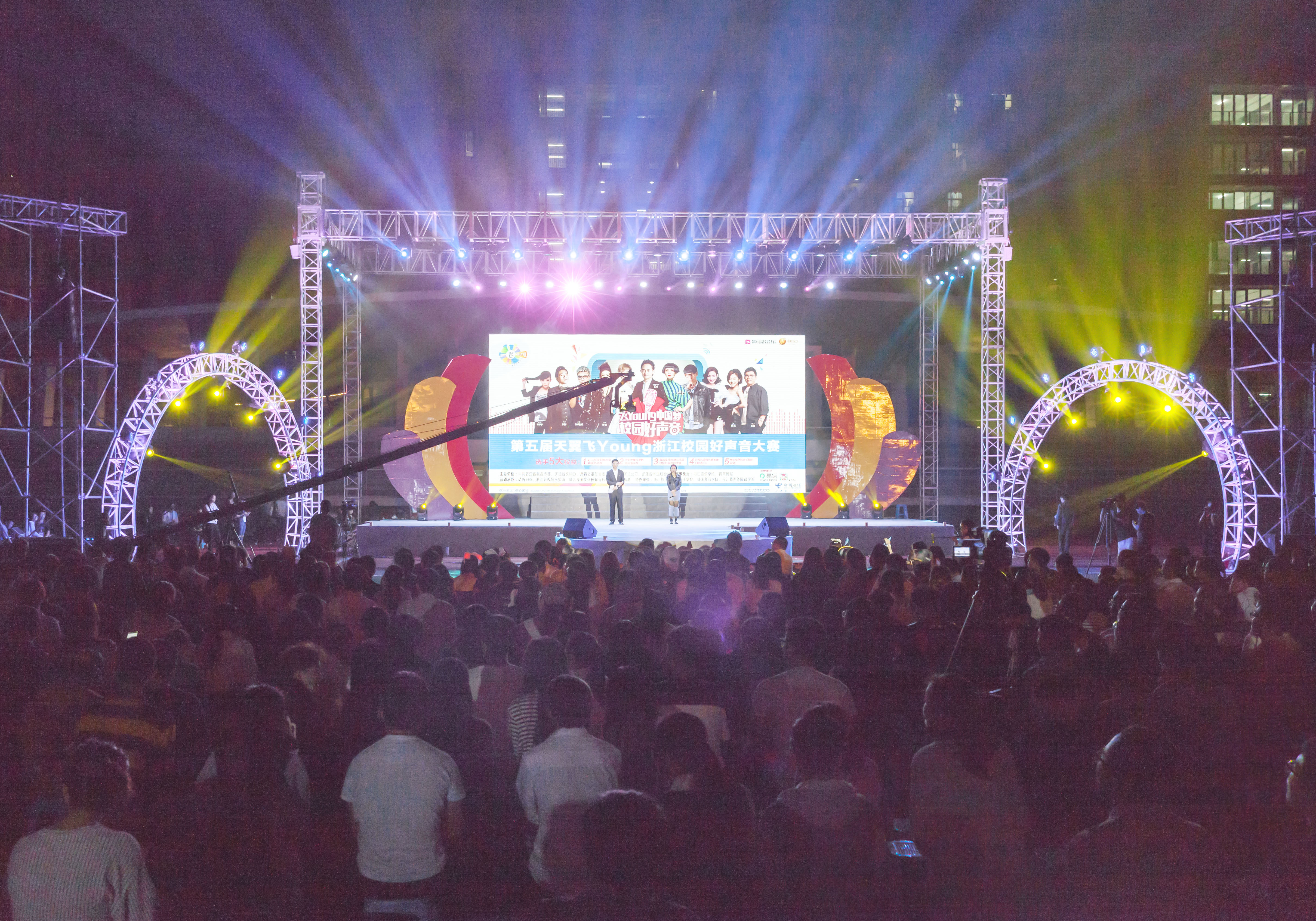 10月16日晚,由中共浙江省委宣传部、浙江省文明办、共青团浙江省委、中国电信浙江公司、浙江省学生联合会主办;浙江音乐学院、青年时报赛事承办“天翼飞Young”浙江省第五届校园好声音大赛巅峰之夜在我院体育场火热开演。中国电信浙江公司副总经理陈华,我院党委副书记贾秀英,共青团浙江省委学校部副部长唐永卿,浙江省学生联合会执行主席李梦倩等出席本次比赛。