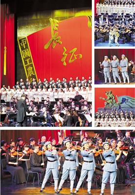 舞台上,《长征组歌》以艺术的形式再现了长征艰难的历程,歌颂红军指战员艰苦卓绝、英勇奋战的英雄气概。当《长征组歌》表演到《四渡赤水出奇兵》《过雪山草地》《报喜》等经典片段时,不少观众情不自禁地打着节拍、跟着哼唱。数十年间,这些耳熟能详的歌曲已伴随几代人的成长,在熟悉的旋律中,闪烁的是自强不息的民族精神,唱出的是共产党人的坚定信念和信仰。