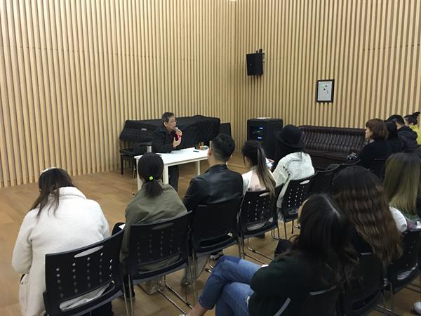 11月9日下午,我国著名流行声乐教育家王明琦应邀来我院举办学术讲座、大师课,流行音乐系师生、校内外来宾共百余人在流行音乐系排练厅现场聆听。