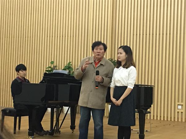 11月14日下午,著名男高音歌唱家、国家一级演员姜嘉锵以“中国歌曲的语音造型与音乐表现”为题,为声乐歌剧系师生做学术讲座。他是中国古典诗词演唱第一人,歌喉放声古诗词,并达到了相当的艺术水平。