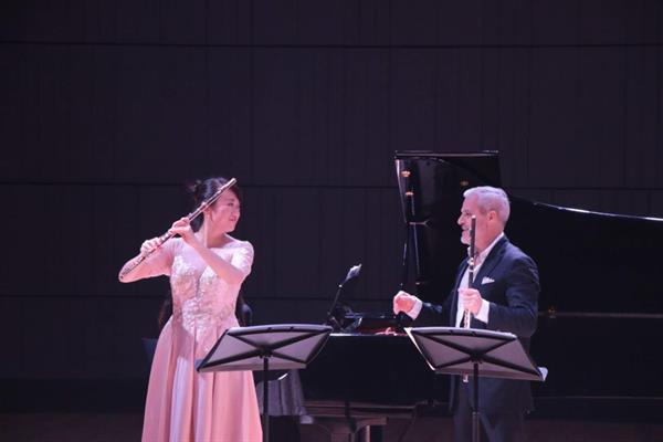 最后,米歇尔邀请何靖一起演奏了F.库劳的《G大调双长笛与钢琴三重奏鸣曲》。三个乐章时而欢快活跃,时而宁静悠扬,两支长笛与钢琴的完美配合,使音乐会在热烈激情的美好氛围中结束,令人意犹未尽。