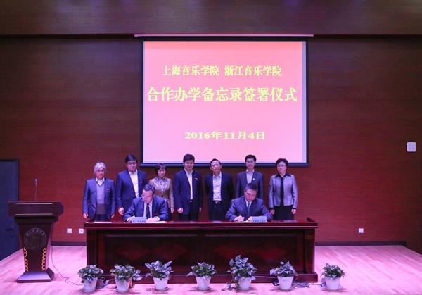 上海音乐学院是国内知名音乐高等学府,拥有近90年的办学历史。在我院筹建期间,浙江省文化厅牵头与上海音乐学院签订战略框架协议,借助上海音乐学院的人才与学科专业优势,在发展思路研究、学科体系架构、师资队伍组建、人才培养模式制订等方面对学院筹建给予了各方面的指导、支持和帮助。上海音乐学院与我院不仅有着沪浙两地相邻的地缘亲情,更在学院筹建期间建立了亲密无间的校际友谊。此次合作办学备忘录的签署,旨在进一步巩固两校之间的良好合作基础,充分发挥双方各自的资源优势,以“借力发力、相互促进、优势互补、互惠互利、讲求实效、共同发展”为原则,在学科专业建设、教学改革创新、高端平台打造、研究创作、艺术实践等各方面开展深入合作,积极探索和推进中国音乐高等教育事业的发展,共同携手为社会主义文化艺术事业的繁荣作出更大的贡献。
