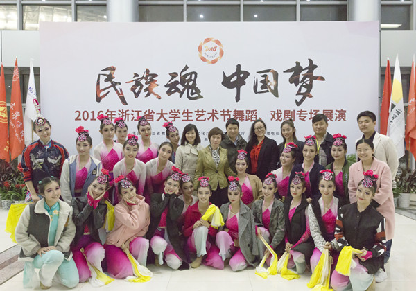 我院郑洁、李子老师指导的《山哈女》和钟冰洁、杨旭东老师指导的《梦蝶飞舞》获得2016年浙江省大学生艺术节现场展演舞蹈群舞(乙组)一等奖,张羡声老师指导的谢磊磊和陈利敏老师指导的徐文君获得2016年浙江省大学生艺术节现场展演校园十佳歌手(乙组)奖项。