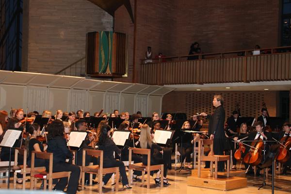 讲学期间,他还作为中方音乐总监及客席指挥参加了在由瓦尔普莱索大学举办的第九届“大湖孔子学院音乐节”闭幕式音乐会。音乐会上,他与大学交响乐团合作演出了德沃夏克第八交响乐。最后,还与来自中国的江苏省民族乐团及美国大湖区6所高中乐团近300名中美艺术家和师生同台联合演出了《瑶族舞曲》。此曲作为艺术节闭幕式音乐会的压轴作品,获得现场观众的热烈掌声。