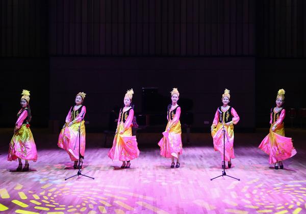 由教师梁伟指导,廖方望、陈荃等演奏的二胡重奏演绎了两首深受人们喜爱的作品。无论是旧友相聚、自得欢喜的《良宵》,还是气势如虹、挥洒驰骋的《赛马》,都让人心生喜悦,沉醉不已。由教师张云良指导的钢琴四手联弹《军队进行曲》由林笑梦、刘艾鑫演奏,在二人默契的配合下,铿锵有力的开场、舒缓悠扬的桥段,都被演绎得绘声绘色,让人如临其境。一袭蓝衣、一卷江南,由教师刘文佳指导,来杨洁、夏豪梦、叶晨等演奏的古筝重奏《茉莉芬芳》娓娓而来。曲清甜,人婉约,当茉莉花的熟悉旋律奏起,引得众人似沉迷在花丛中,沾一身茉莉芬芳。由教师解本康指导,黄晶、王冲演唱的男女声二重唱《想亲亲》以其极具故事性和感染力的表演,让人眼前一亮。最后的两首弦乐合奏是由教师张宝君指导,闫雯、秦兵、彭傲添、李阳等演奏,在《闲聊波尔卡》的欢愉兴奋中,在《玛依拉》的明快轻盈里,汇报演出圆满结束。