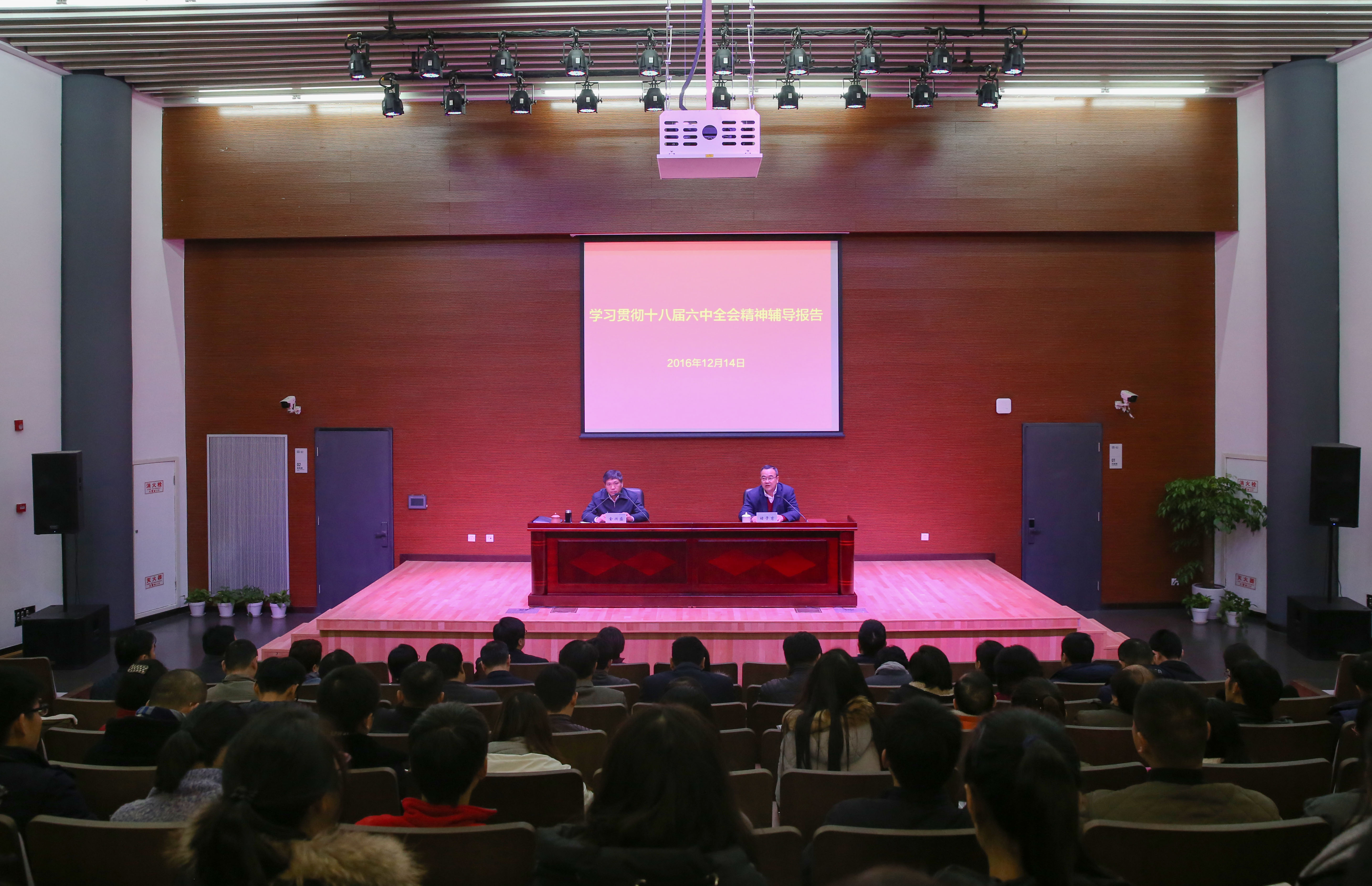 12月14日下午,我院召开学习贯彻十八届六中全会精神报告会,省委十八届六中全会精神宣讲团成员、我院思想政治理论课特聘教授、文化厅厅长金兴盛作了题为《认真学习贯彻党的十八届六中全会精神,推动浙江音乐学院跨越发展》的专题报告。学院领导褚子育、张建国、贾秀英、张鸿雁、方培新,全体中层干部,机关教工党员,各系学生党支部委员、学生入党积极分子,以及乐典公司党员参加了报告会。学院党委书记、副院长褚子育主持报告会。