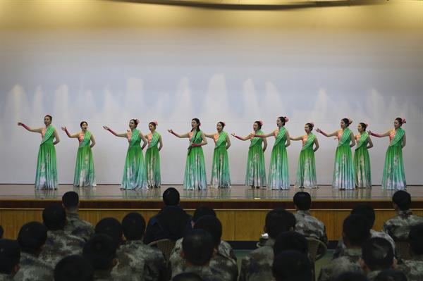 同学们为部队官兵们精心准备了舞蹈、歌曲、器乐演奏等十余个节目,演出精彩纷呈,气氛热烈。二胡独奏《战马奔腾》歌颂了骑兵战士为了保卫祖国,英勇顽强、一往无前的战斗精神。音乐教育系原创作品《水灵灵的西子》将西湖山水文化的深厚底蕴透过灵动隽秀的歌舞展现出来。压轴节目《天边》借鉴川剧的经典技法,舞蹈演员服装瞬间华丽“变脸”,赢得现场观众阵阵喝彩。部队官兵对我院学生的精彩演出表示欢迎和感谢,高度赞扬了我院学生的演出水平,希望能够经常开展多方面的军校联谊活动。