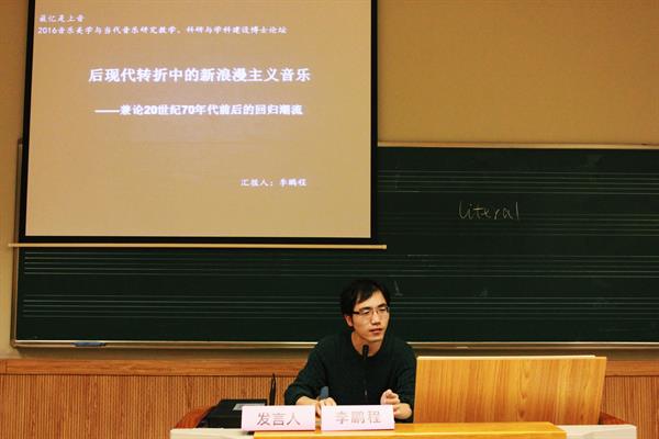论坛上,我院音乐学系青年教师郭一涟和李鹏程分别以“一又二分之一年”和“后现代转折中的新浪漫主义音乐”为题进行发言,获得了与会专家学者的一致好评。