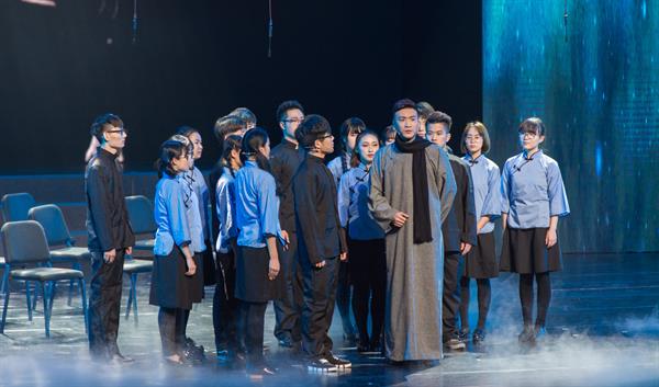 汇报演出分传承经典、悠悠民风、小荷初绽三个篇章,节目衔接紧密、层层递进,现场氛围热烈。序曲《百年音教》回顾了音乐教育系厚重的历史沿革,一声“先生”将观众穿越到李叔同倡导的“琢磨道德、促社会之健全、陶冶性情、感精神之粹美”的课堂现场。一颦一式将百年音教的精髓演绎得淋漓尽致,当围巾从李叔同先生手中传递到“新音教人”手中时,交汇的是一系嫡传的厚重历史感与庄重现实感。