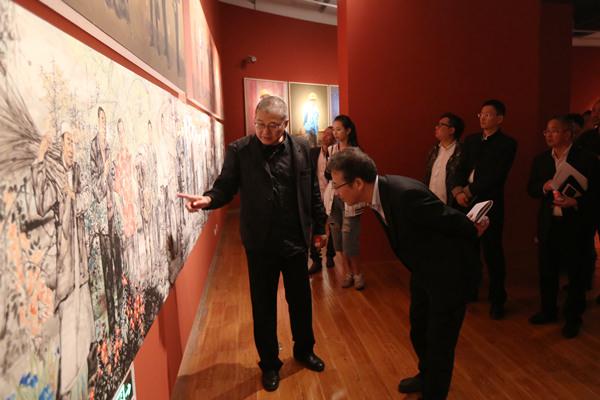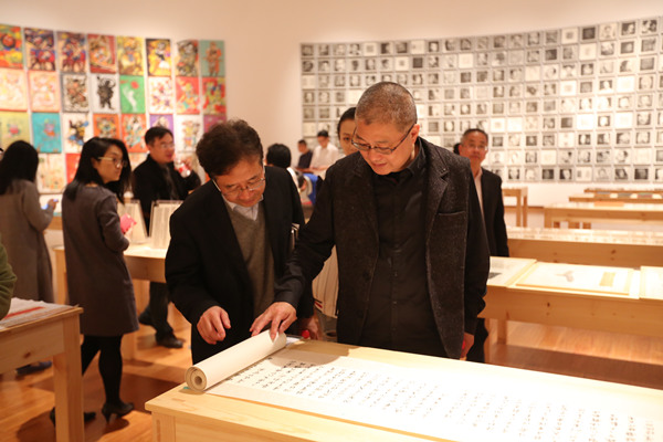 我院一行参观了“大学望境——中国美术学院建设世界一流大学十周年特展”展出的天地绘心、水印千年等15个主题成果展示,中国美术学院院长许江全程陪同并亲自讲解。美院党委委员、党院办主任徐国强,发展规划与学科建设处、教务处、研究生处、研创处负责人随行。