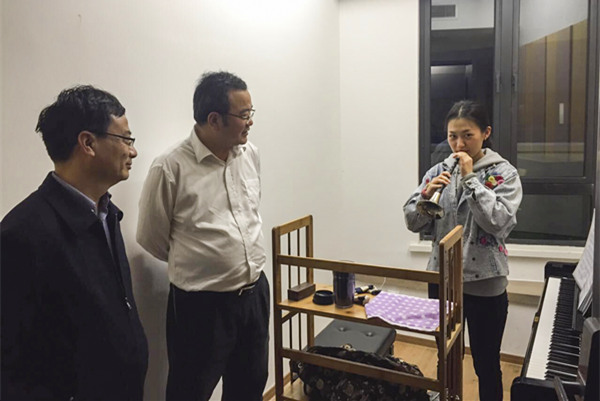 孙若风一行先后考察大剧院、音乐厅、音乐群楼,并进入师生琴房与学生交流。
