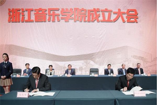 成立大会上,夏宝龙和文化部副部长董伟共同为浙江音乐学院揭牌。省委常委、宣传部长葛慧君讲话,副省长郑继伟宣读了教育部、省政府建校批文并与董伟签署省部合作共建浙江音乐学院协议。赵一德、陈金彪、姒健敏、蔡秀军等出席。浙江音乐学院负责人在会上致辞并与捐赠企业、个人签约,奥地利萨尔茨堡莫扎特音乐学院、上海音乐学院负责人以及学院教师和学生代表作了发言。成立大会后,与会领导和嘉宾观看了浙江音乐学院师生的汇报演出。