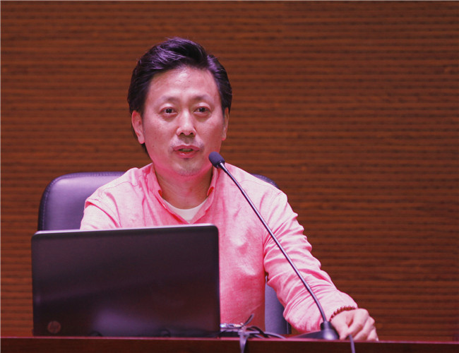 讲座中,他以《论闵惠芬二胡演奏艺术之二胡演奏声腔化》为题,仔细分析了闵惠芬的音乐魅力和在对二胡演奏的影响。正如闵惠芬所说过的,“器乐演奏声腔化,为我确立了后半生的命题,引导我进入了中华文化传统之渊源,架起了攀登中国民族音乐艺术高峰的天梯。”他就什么是器乐演奏声腔化,并列出四个方面来具体阐述:什么是器乐演奏声腔化、器乐演奏声腔化与中国民族音乐特质和文化审美的契合、器乐演奏声腔化的特征和具体的表象、器乐演奏声腔化对二胡艺术发展的重要意义。