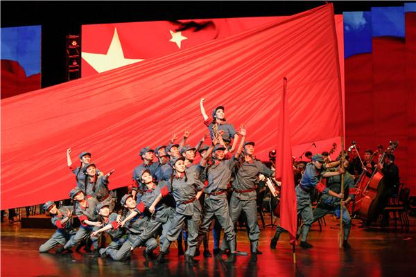 由浙江音乐学院交响乐团演奏,舞蹈团伴舞、刘志培指挥的大型交响乐《红旗颂》拉开了这场盛宴的序幕。红旗如画,展现光辉历程;岁月如歌,颂唱丰功伟绩。伴着激昂的旋律,一群热血的红军战士翻雪山、过草地,最终取得胜利。一曲《红旗颂》,让观众们深深地感受到革命年代的胜利喜悦。