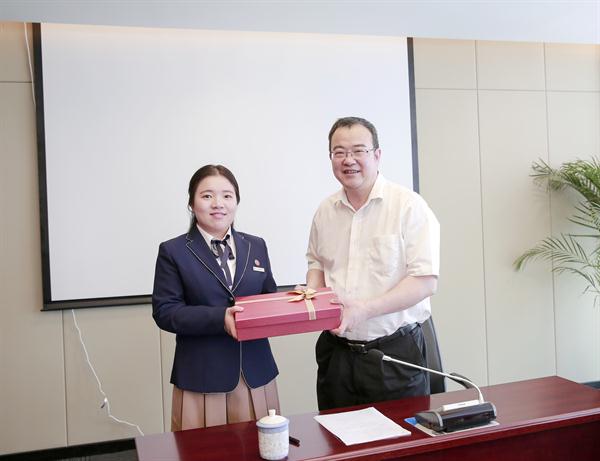 座谈会上,我院毕业生代表向学院赠送纪念品,包含2016届毕业生各场音乐会视频及学生撰写出版的书籍,褚子育代表学院接受纪念品。