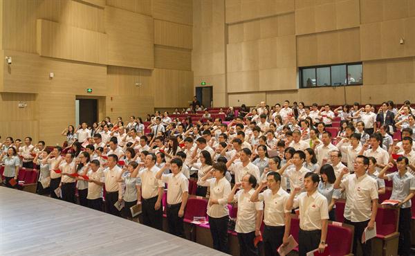 6月29日下午,学院在小剧场举行庆祝中国共产党成立95周年大会,学院党委书记褚子育,党委副书记、副院长张建国,党委副书记贾秀英,副院长张鸿雁,纪委书记方培新出席大会,全体中层领导人员、师生党员、入党积极分子参加大会。大会由张建国主持。