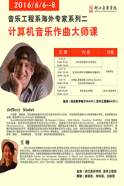 6月7日 18:00--19:00 | 杰弗里.斯图莱特(Jeffery.Stolet)交互音乐作品展示会 | ||
