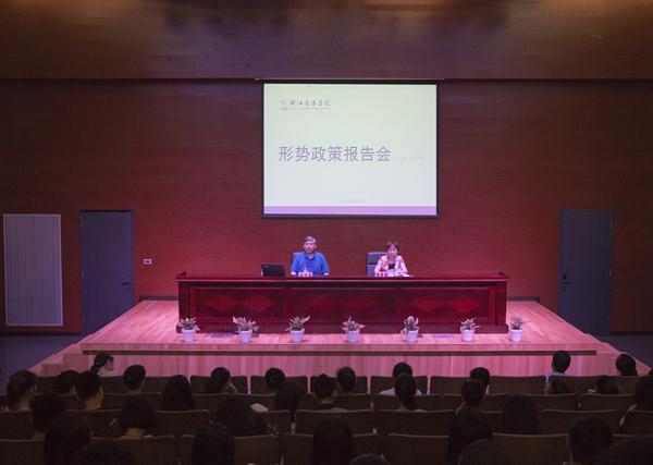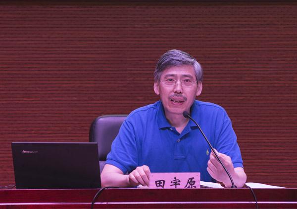 6月8日下午,省文联党组书记、我院思政理论课特聘教授田宇原在学术报告厅作形势政策报告,思政课教师、辅导员和学生代表200余人听取了报告。报告会由党委副书记贾秀英主持。