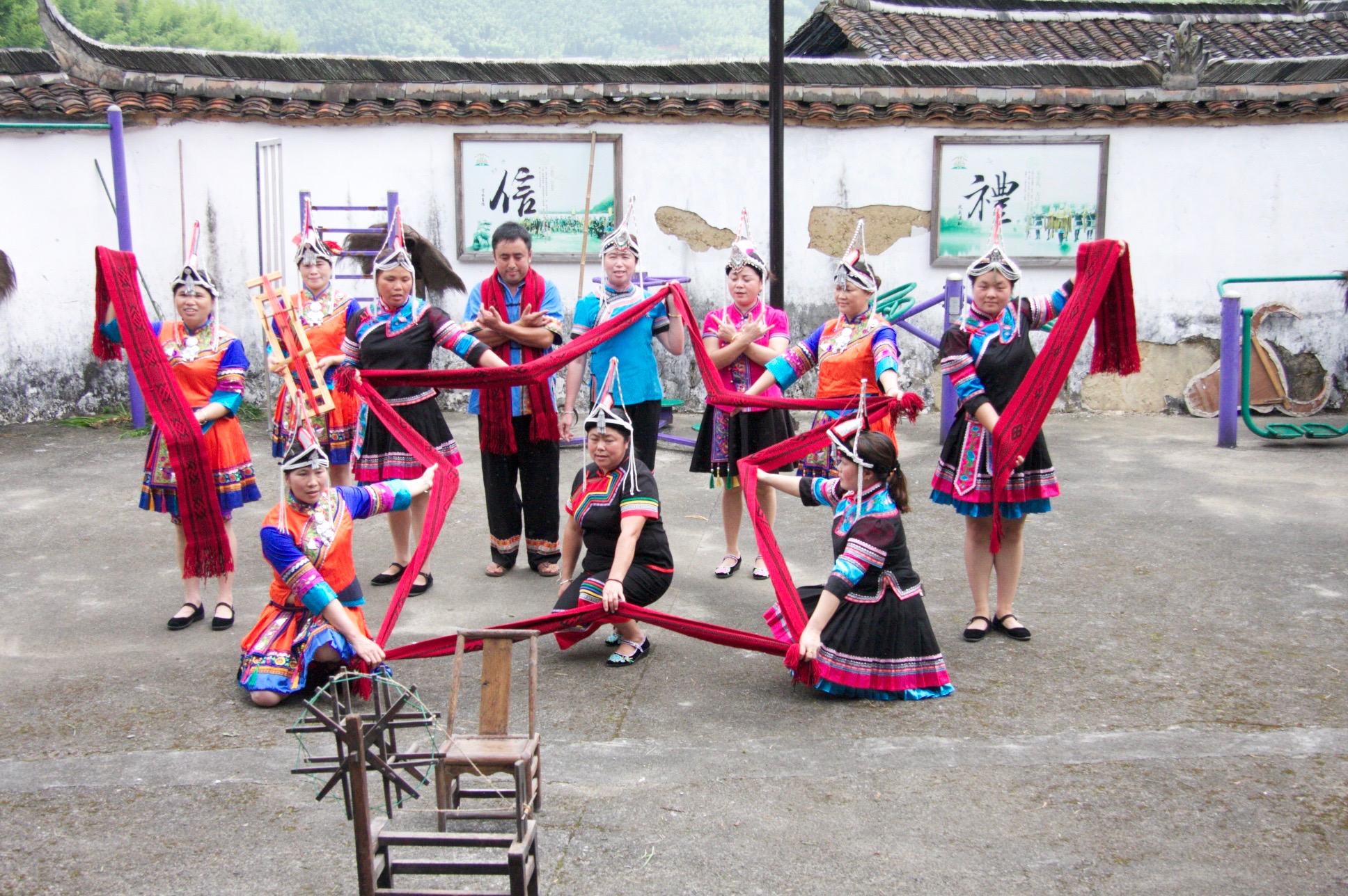 畲族音乐是和当地的民俗、仪式、日常生活方式相联系的,为了采录畲族原生态音乐,采风团队深入畲族村寨,考察了封金山畲寨畲族风情篝火晚会、东弄村原生态歌舞表演、大均畲乡之窗婚礼仪式,观看了民间的木拍舞、灵刀舞、酿酒舞、采茶舞、劳动歌舞、畲族婚俗音乐等。在考察过程中,同学们兴奋地参与到畲族歌舞和婚俗仪式的表演中。