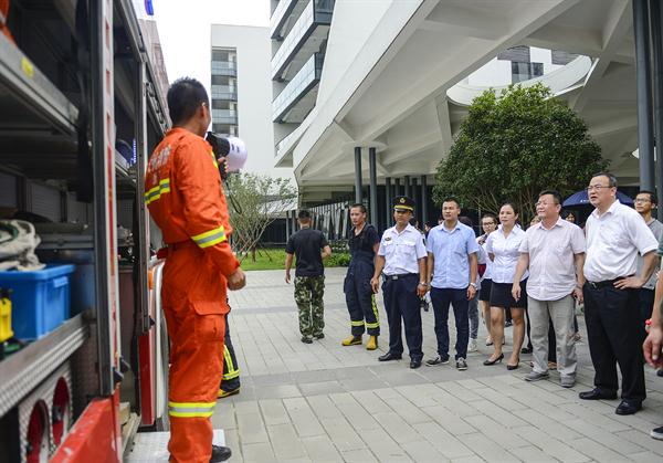 7月7日下午,我院组织开展消防及突发事件疏散演练。学院党委书记、综治委主任褚子育,副院长、综治委副主任张鸿雁,综治委全体成员,各二级单位综治安全信息员和消防安全管理员,全体辅导员,学生代表,保卫处全体人员,乐典公司员工代表等近200人参加本次演练活动。