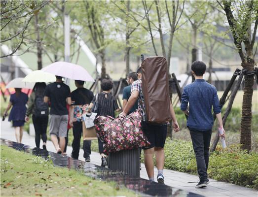 9月16日,是浙江音乐学院2016级新生报到的日子。校园内,处处洋溢着喜庆的氛围。