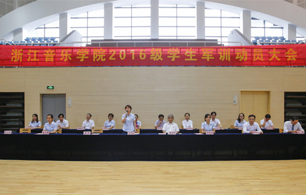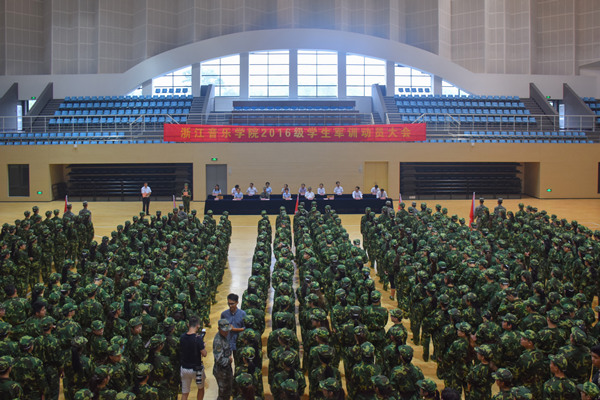9月18日上午,我院2016级新生军训动员大会在体育馆隆重举行。学院党委副书记贾秀英,副院长杨九华,中国人民解放军驻杭某部队上尉、军训团团长周宇,有关部门负责人、各系副书记及承训部队教官出席动员大会。大会由学生工作部部长徐其虎主持。