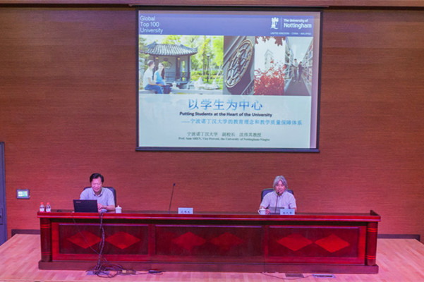 8月26日下午,宁波诺丁汉大学党委副书记、副校长沈伟其应邀来我院作了主题为“以学生为中心——宁波诺丁汉大学的教育理念以及教学质量保障”的专题报告。我院副院长杨九华主持报告会,学院党政领导班子成员,全体中层干部聆听了报告。