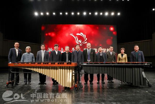 在揭牌仪式环节,领导们一同敲击马林巴,以一种特殊的方式与全场观众共同见证浙江音乐学院附属音乐学校的正式成立。整个音乐会在《共圆中国梦》和《我爱你中国》的歌声中落下帷幕。