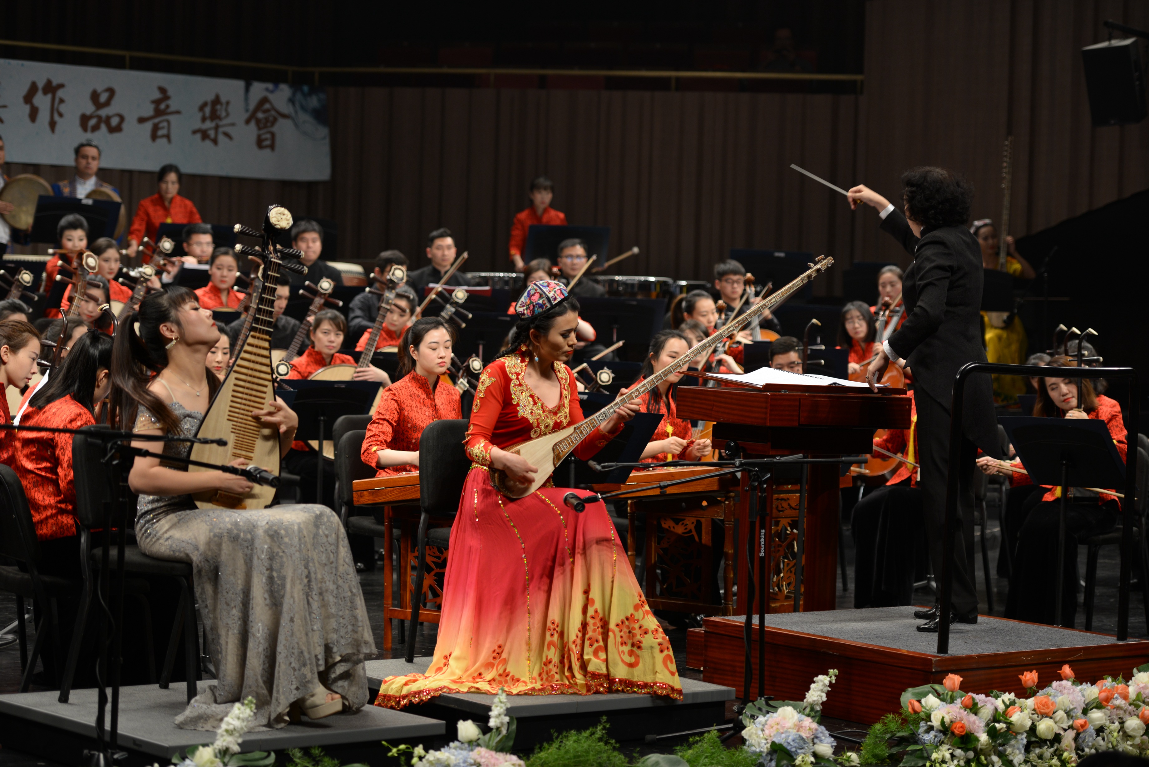 琵琶、弹布尔与乐队《楼兰意象》由我院教师、青年琵琶演奏家杨婧与特邀新疆演奏家买尔哈巴·努尔买买提共同担任主奏。二胡协奏曲《无极》由我院教师、青年二胡演奏家张咏音担任主奏。前者回望历史,抒发情感,表达对辉煌灿烂的中华文化与人类文明的敬意;后者回溯音乐本源,虚幻、深邃、细腻,让观众在音乐中徜徉、感知、遐想。从大漠黄沙到缥缈仙境,让观众脑洞大开,流连忘返。几位演奏家在充分展现高超演奏技艺的同时更将音乐处理得细致入微,将流淌于心间的动人音符淋漓尽致地传递给了听众。