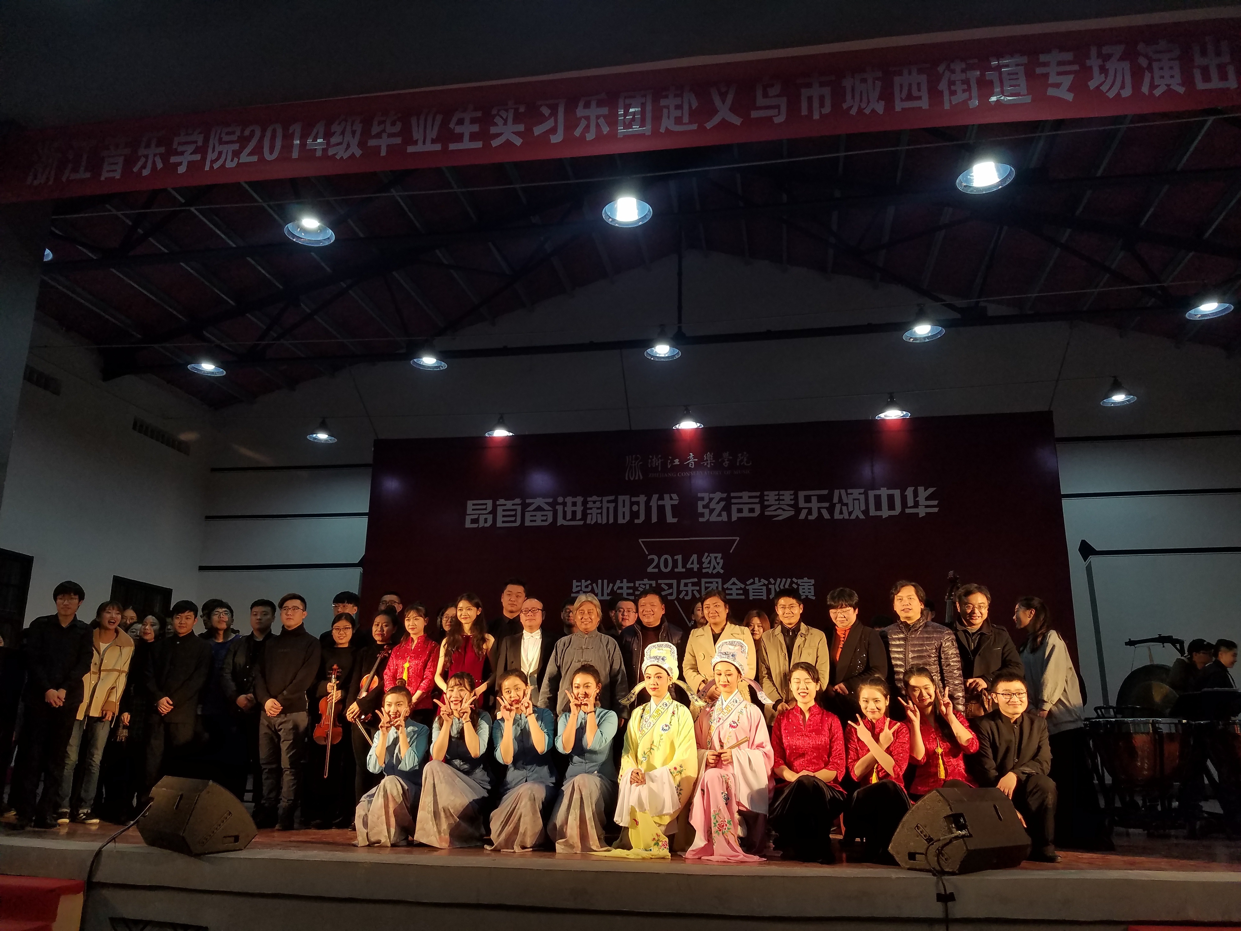 11月14日至12月4日,2014级毕业生实习乐团共举办了全省巡演8场、校内演出2场,其中走进6所高校、2个农村文化礼堂,累计观众达6000余人次。农村礼堂采用了网络直播,点击人次近20000次,合计受益群众约26000人次,比去年明显提升。演出期间,学院党委书记褚子育、纪委书记方培新、副院长杨九华先后赴演出现场慰问指导。