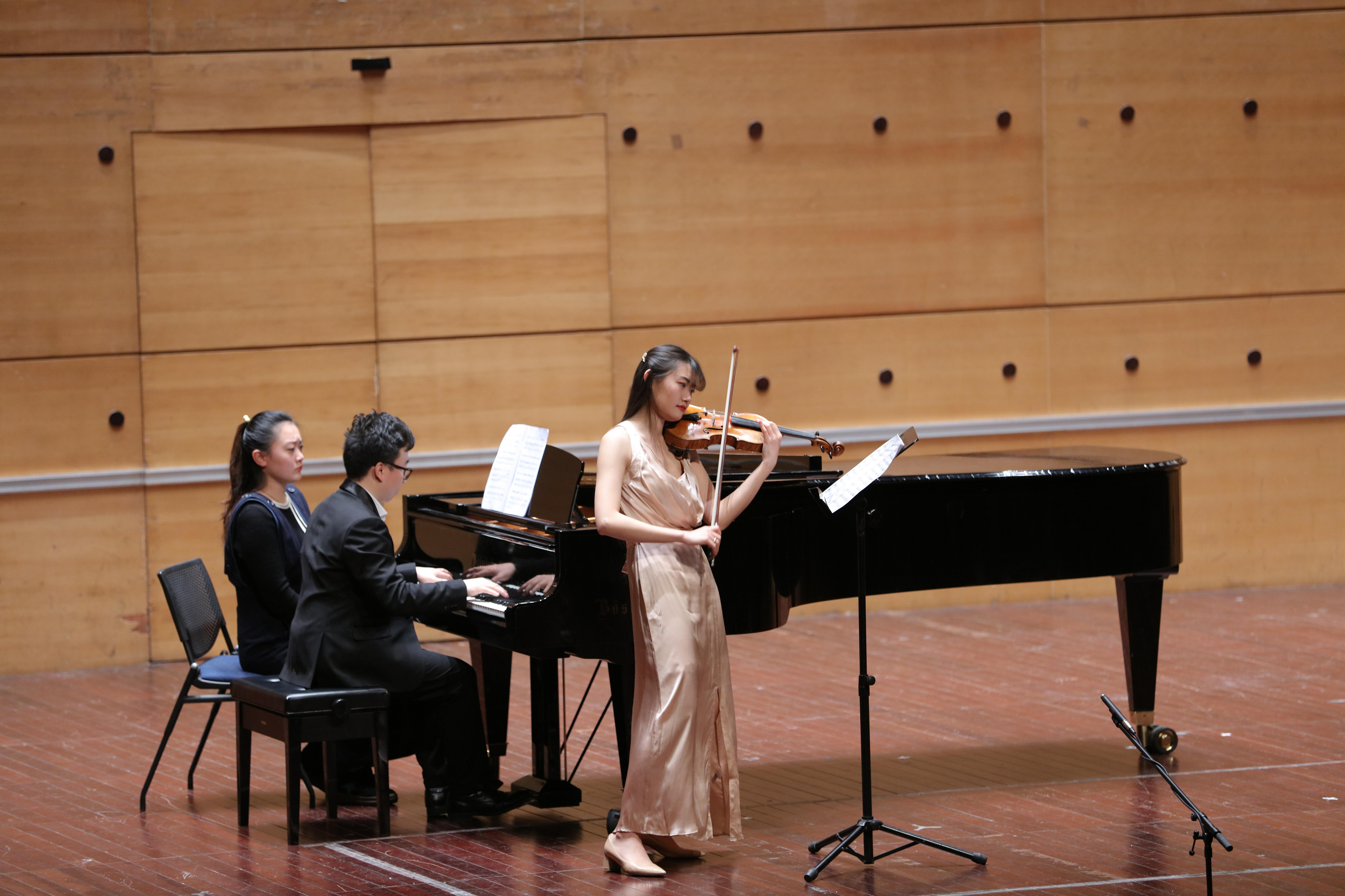 音乐会在浙音附中小提琴教师范晨君与钢琴教师陈在田的合奏——《伟大的北京》中拉开序幕。音乐会上,附中教师的节目形式多样。大提琴教师宁涛和艺术指导教师姜筱雯共同演奏的《浪漫曲》、长笛教师韩頔带来的弗兰克·马丁创作的现代派作品《叙事曲》、钢琴教师孙巍与舞蹈教师张洁呈现的肖邦《A小调圆舞曲》、钢琴教师刘倩云带来的肖邦《叙事曲No.1》、钢琴教师陈在田老师演奏的《茉莉花》、声乐教师蔡肖峰演唱的莫扎特歌剧《唐璜》选段《夫人,请看这张名单》和拉赫玛尼诺夫的《阿列科》选段《人们已经入睡》、温凯雯老师带来的罗西尼的《塞维利亚的理发师》选段《我听到美妙的歌声》和歌曲《黎明》以及艺术指导陆畅老师精湛的钢琴演奏,都深深地打动了现场的观众。老师们所呈现的经典作品就如同丝绸之路上孕育的文化,经久不衰、历久弥香。