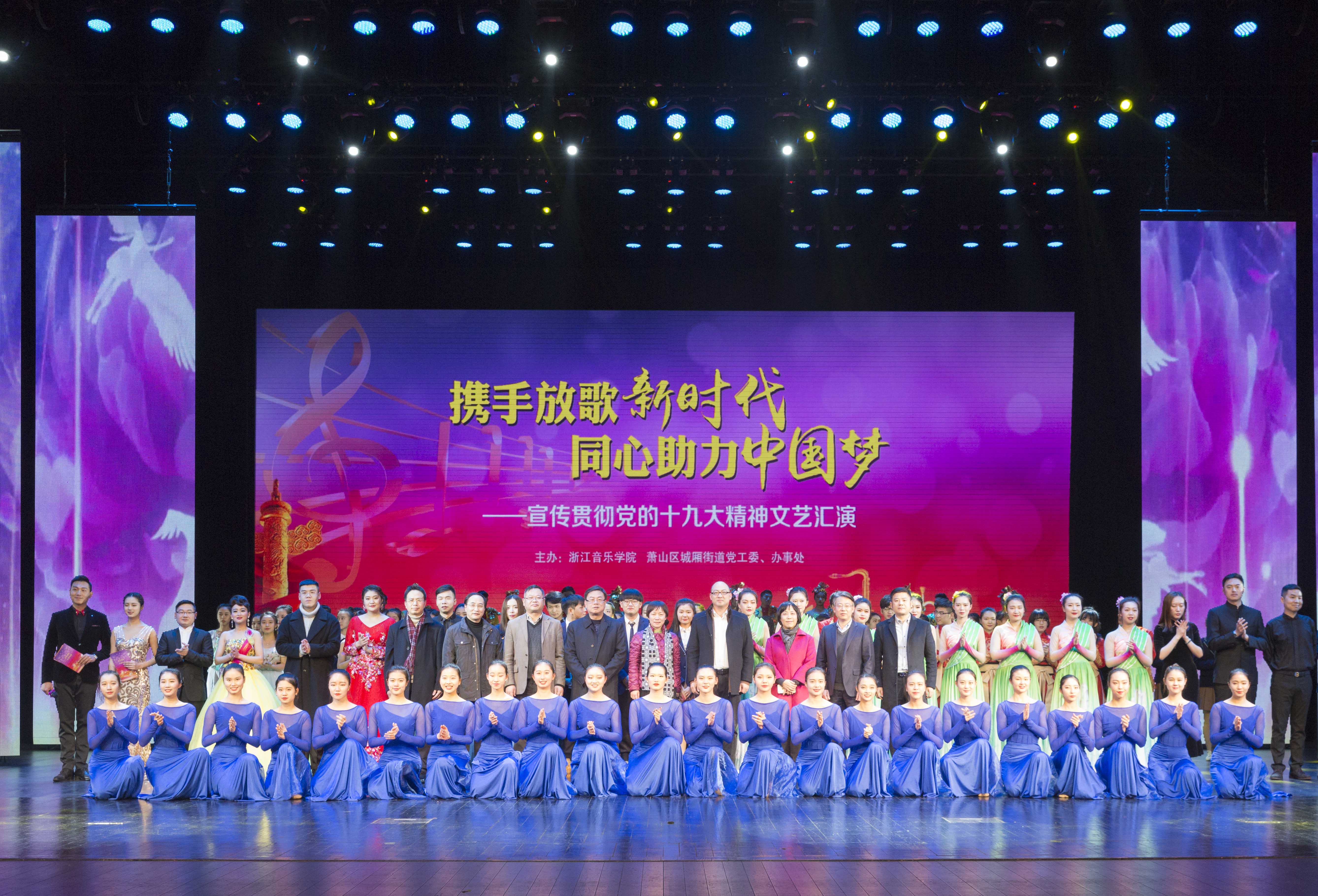 12月17日晚,由浙江音乐学院和萧山区城厢街道党工委、办事处共同举办的“携手放歌新时代,同心助力中国梦”宣传贯彻党的十九大精神文艺演出在萧山剧院成功举行。学院党委副书记贾秀英,萧山区区委常委、副区长何波,区人大常委会副主任董恩华,区人民政府副区长杨晓峰,区政协副主任黄晓燕,学院党委组织部、党委宣传部、团委有关负责人一同观看了演出。