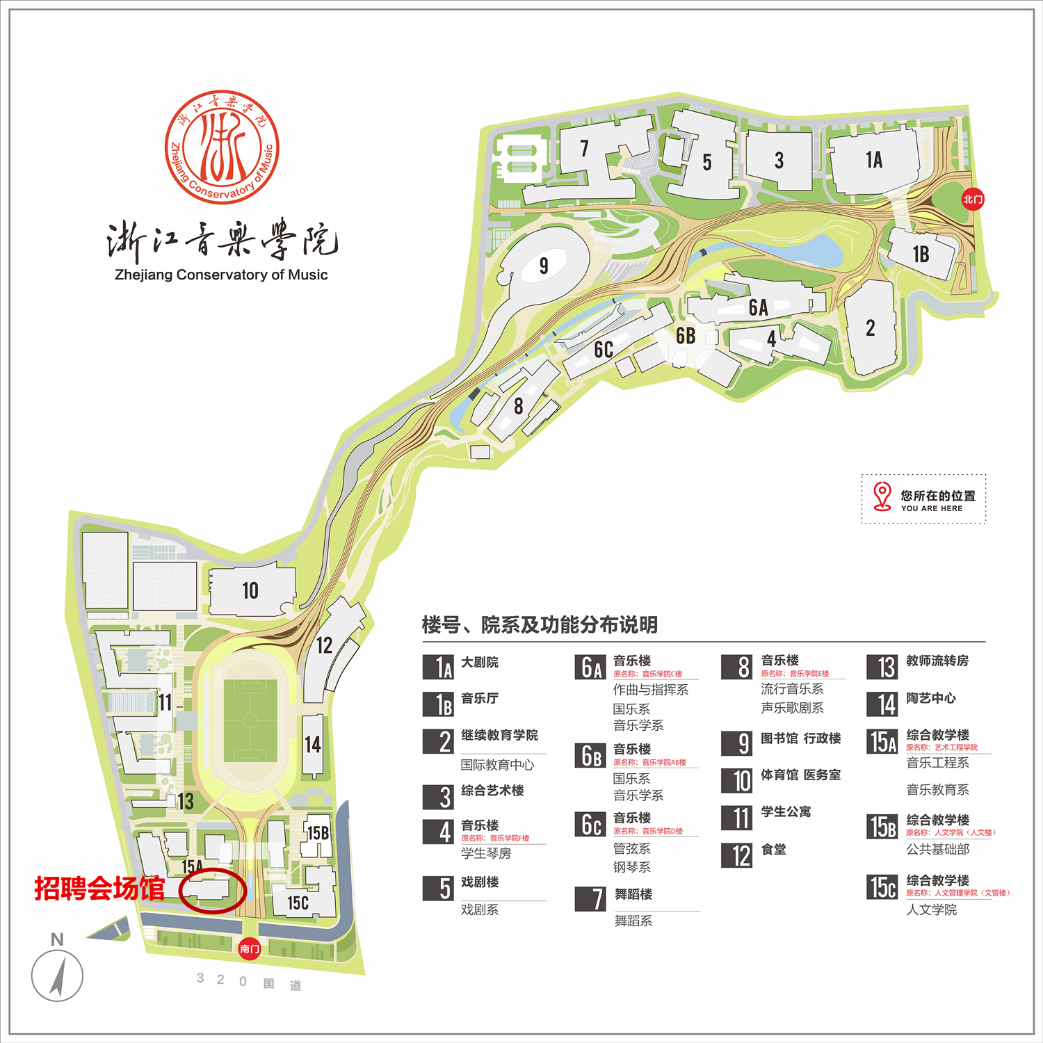 用人单位当天中午1点开始签到、布展(因场地限制不能张贴海报,请自行携带易拉宝及简易纸质材料)。所有参加招聘会的车辆从G320国道的南门进出,统一停在音乐工程楼地下停车场,有工作人员和指示牌引导。