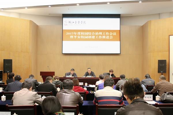 褚子育传达了全省建设平安浙江工作会议的精神,他指出,要进一步提高加强平安校园建设的思想认识,增强大局意识,将开展校园综合治理工作与创建平安校园活动结合起来,全校一盘棋,上下合力,切实做好学院治安综合治理及平安校园创建工作。