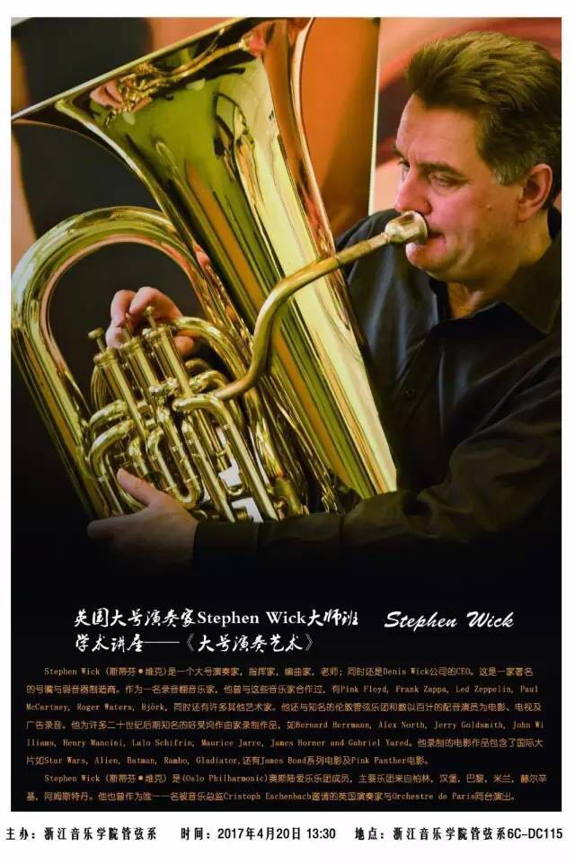 英国大号演奏家Stephen Wick大师班、 学术讲座——《大号演奏艺术》