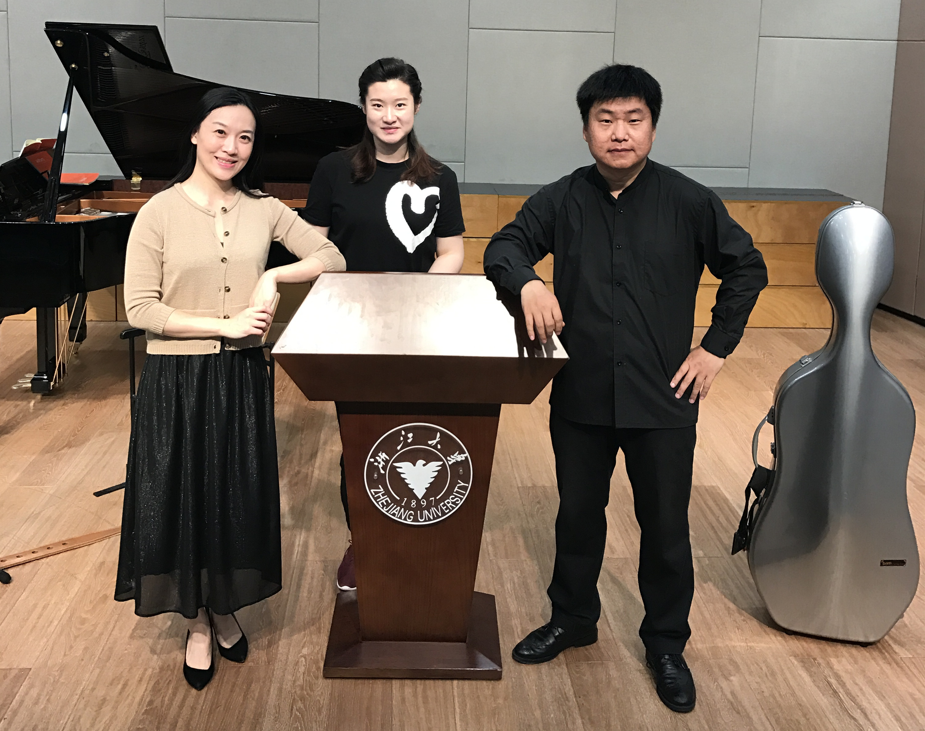 应浙江大学邀请,4月20日晚,我院杭州钢琴三重奏的石帅、谭璐、张宝君三位青年教师在浙江大学紫金港校区成功举办了专场音乐会。此次音乐会是浙江大学120周年校庆艺术系列活动暨第五届浙江大学艺术季项目之一。音乐会由浙江大学公共体育与艺术部副主任周聪主持。