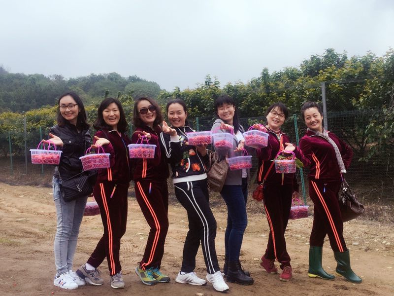 中午时分,我院女教职工井然有序地到达目的地。满山的樱桃树,沁人的果香,雨后清新的空气顿时让大家心生陶醉。大家纷纷从园主手里领过一只只采摘篮,迫不及待地走进园中去感受采摘的快乐。先尝一口是否香甜,再将红彤彤的樱桃放入篮中,摘得不亦乐乎。在这里,大家聊着、笑着,热闹非凡,尽享大自然给予的清爽怡人和同事间情感交流的愉悦欢畅。最后,大家收获了一篮篮丰硕的“劳动成果”。走出樱桃林,每一个人的脸上都洋溢着幸福快乐的笑容。