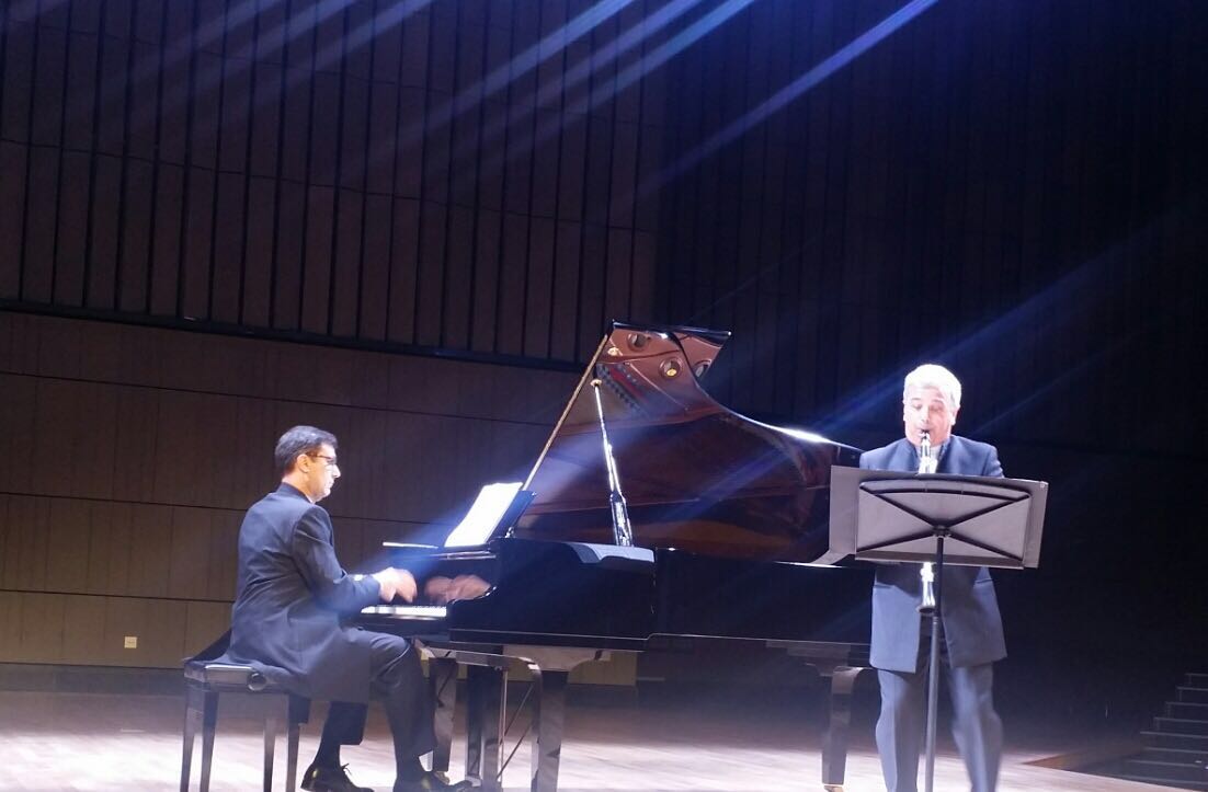音乐会上,意大利音乐家曼加尼、波希与巴托利为我院师生献上非常精彩的艺术作品。第一首曲子是由中国传统民歌《山丹丹花开红艳艳》改编的单簧管作品。他们曾研究声乐、器乐的多个版本,通过意大利人的视角诠释了中国音乐之美。随后,波希演奏了多首引人入胜的意大利作品,如布索尼的《悲歌》、卡瓦里尼《罗西尼的花》,以及曼加尼本人创作的的《浪漫曲》和《奏鸣曲》。波希与巴托利的演奏行云流水,自然天成,从技巧的控制到情感的传递,从色彩的掌控到音乐的表达,乐思意绪滚滚流动,真情实感直抵心田。演奏家用精湛的技艺赢得了观众持久的掌声。