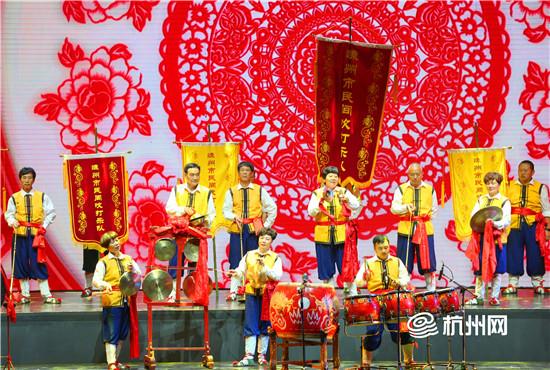 温州乐清撞歌《对鸟》旋律清新爽朗,节奏舒缓,歌声如溪水般清亮、悠长,曲中不时传来山间鸟鸣声,不禁让观众产生无限遐想。锣鼓喧天,丝竹悠扬,缙云丝竹锣鼓《花头台》的音乐内容丰富,喜庆欢乐、热情奔放的气氛让大家沉醉在欢乐之中。