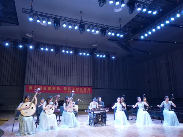 当晚,作为向省十四次党代会献礼,国乐系党总支在现代音乐厅举办了主题为“勇立潮头建新功、党员干部当先锋”的党建专场音乐会,国乐系的师生以音乐演出的形式,表达了自身对党的热爱,对学业和专业事必尽善、勇立潮头的目标与心愿。