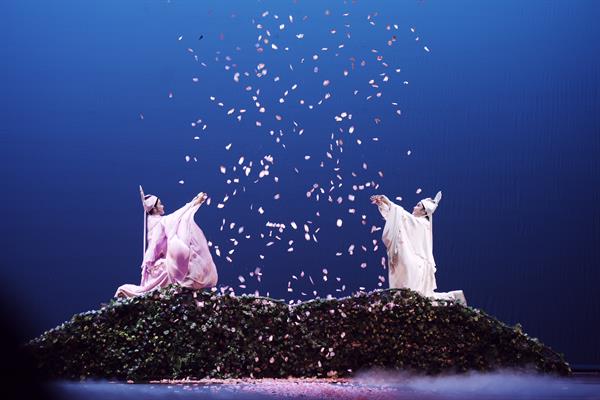 演出在一片热烈掌声中拉开帷幕。绚丽多姿的舞台布景、精致唯美的服装道具和青年演员精湛的艺术表现力让观众们眼前一亮。新版越剧《梁祝》是浙江小百花越剧团为了纪念越剧百年诞辰,在老版越剧《梁祝》的基础上,从文本改编、音乐结构、舞台呈现等方面都做了全面创新,让古老的爱情传说得以重新演绎,同时赋予了更为现代和唯美的色彩。全剧一一展现了那脍炙人口的经典唱段,剧终时刻,梁山伯与祝英台以扇喻蝶,表达真挚而伟大的情感,那种东方式诗意和浪漫为观众带来无限的遐想。