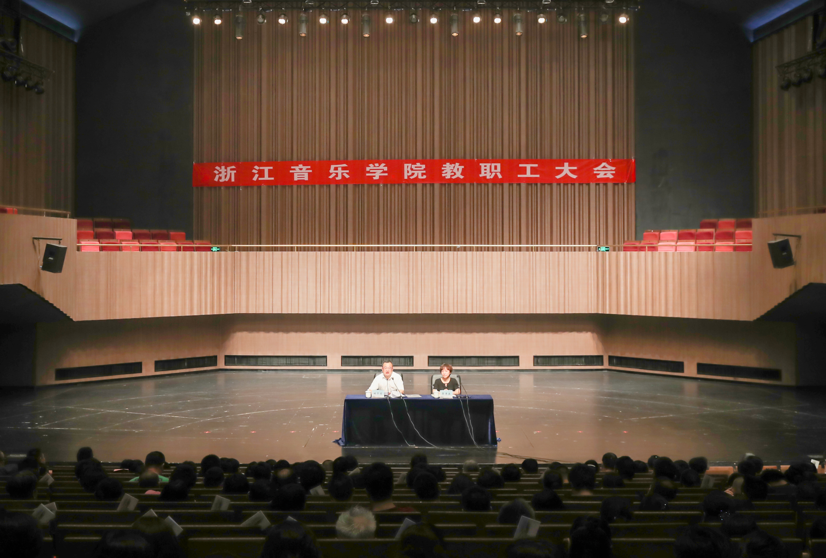 7月3日下午,学院在音乐厅举行2016-2017学年第二学期末教职工大会,学院党政领导褚子育、贾秀英、张鸿雁、方培新、杨九华,全体中层干部、教职工参加会议。会议由学院党委副书记贾秀英主持。