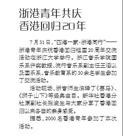 首页 > 浙音新闻网 > 媒体传真 音乐周报:浙港青年共庆香港回归20年 来源:宣传部 作者:宣传部 时间:2017-08-10 人气: 新闻来源:A10_Print(5).pdf 返回 打印 下一篇:
