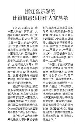 首页 > 浙音新闻网 > 媒体传真 音乐周报:浙江音乐学院计算机音乐创作大赛落幕 来源:宣传部 作者:宣传部 时间:2017-09-06 人气: 新闻来源:A10_Print(1).pdf 返回 打印 下一篇: