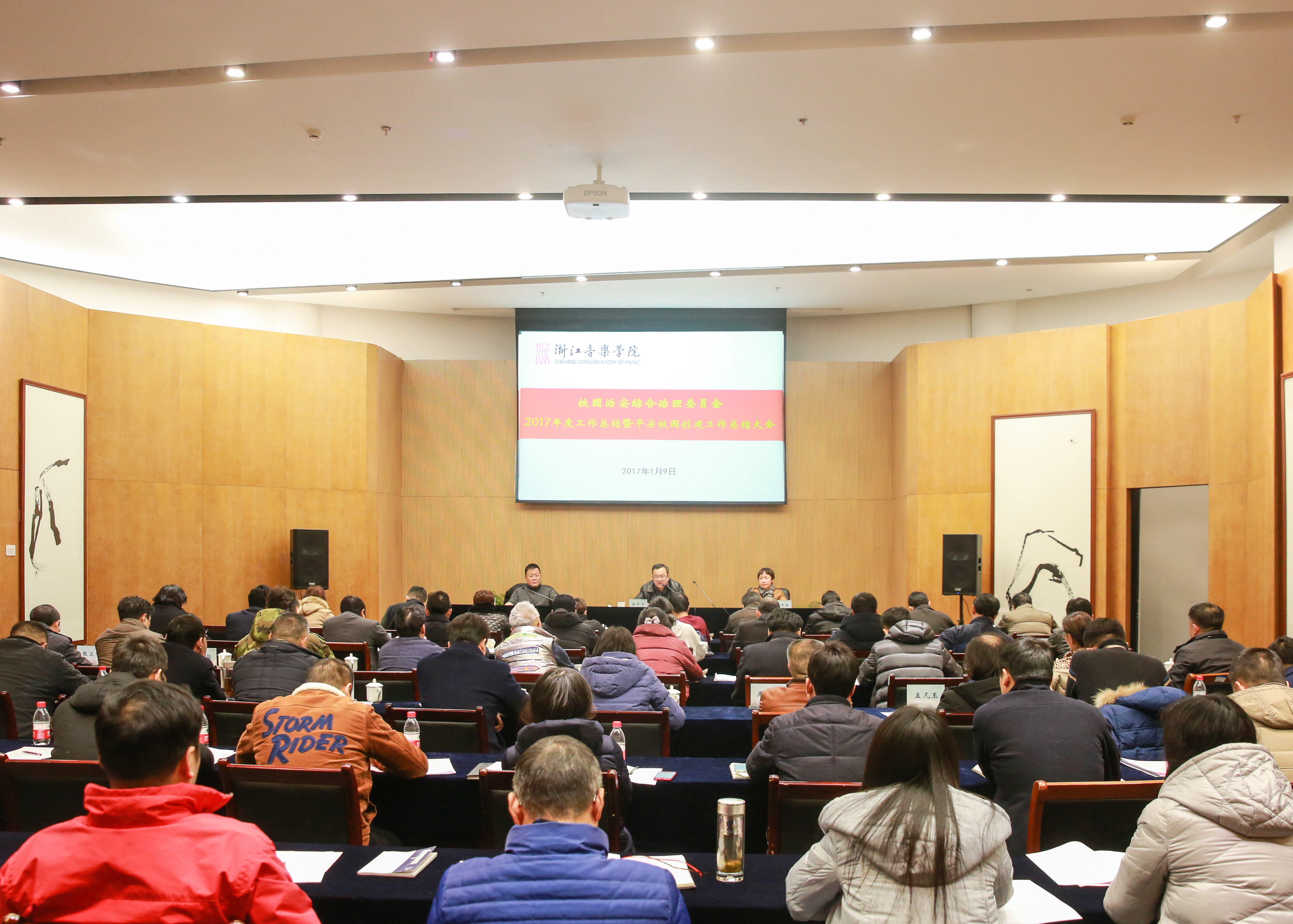 褚子育充分肯定2017年度学院综合治理及平安校园创建工作,并对今后工作提出具体要求。他强调,学院各系(部)、部门一定要高度重视校园综合治理工作,充分认识安全稳定工作的重要性、紧迫性、长期性和艰巨性,以“平安浙音”的创建为起点,积极主动谋划安全稳定工作,将安全稳定工作抓在手上、记在心上、扛在肩上;优化制度流程,完善责任体系,不折不扣落实安全稳定工作领导责任制和部门责任制;完善考核、加强督查,严格执行安全稳定“一票否决”。希望全院上下以翻篇归零的心态,以更高的标准、更严的要求、更实的举措,持之以恒地抓好安全稳定工作,牢牢守住安全“红线”和平安“底线”,为学院“二次创业”“弯道超车”营造安全稳定、文明和谐的校园环境。