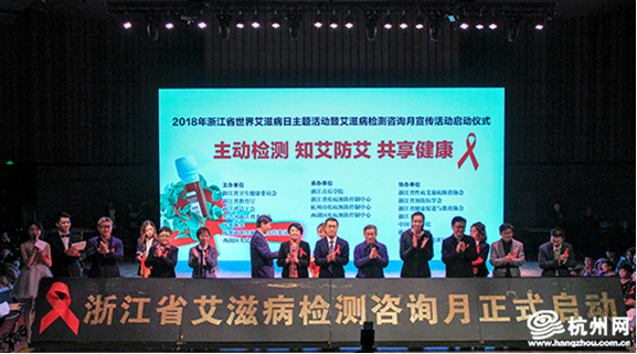 11月27日下午,2018年浙江省世界艾滋病日主题活动暨艾滋病检测咨询月宣传活动启动仪式在浙江音乐学院举办。