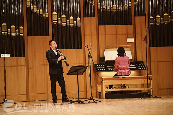 音乐会在浙江音乐学院单簧管教授董德君和青年管风琴演奏家李艺花合奏的作品《来自中国的色彩》颇具动感、充满浓郁中国韵味的音乐旋律中拉开首演序幕。该曲是意大利著名作曲家曼加尼2017年依据中国音乐民族调式特点创作而成的,深受当今国内外演奏家的青睐,此曲多为单簧管与钢琴合作,这是单簧管与管风琴的世界首演。作品旋律婉转流畅,格调清新雅致,通过五声调式瞬间拉近了西洋乐器与中国乐迷的距离。
