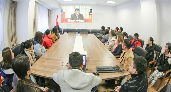 12月18日上午,庆祝改革开放40周年大会在北京人民大会堂隆重举行。学院党委书记胡建新,党委副书记、副院长张建国,党委副书记贾秀英,纪委书记方培新和机关党员干部在行政楼103主会场集中收看大会直播,同时学院在各系(部)、直属单位设立十几个分会场,组织师生员工第一时间收听收看。