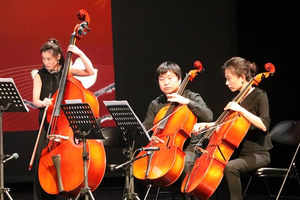 当地时间15日晚,文化交流团在蔻丹艺术中心举办首场演出。中国驻毛里求斯大使孙功谊、中国驻毛里求斯使馆文化参赞兼文化中心主任松雁群、毛里求斯前副总统贝勒波,外交部常秘兰冈,艺术和文化部常秘拉茹吉亚,卫生部常秘拉吉纳兰,路易港代市长玛默德,法国驻毛大使科埃,日本驻毛大使吉原加藤等约400余人观看了演出。音乐会上半场,文化交流团师生们为观众们演绎了中国传统名曲。下半场,东西方经典曲目交相辉映,实现了东西方音乐的完美交融。整场音乐会,师生们用高超的技巧和投入的情感征服了所有听众。演出最后压轴曲目是乐团特别排练的毛里求斯独立50周年主题曲《Lame dans lame(手拉手)》,在动人的歌声与乐曲声的带动下,全场听众一同打着节拍,不断重复高唱“将我的手放进你的手,我们手拉手”,将气氛推向了高潮。