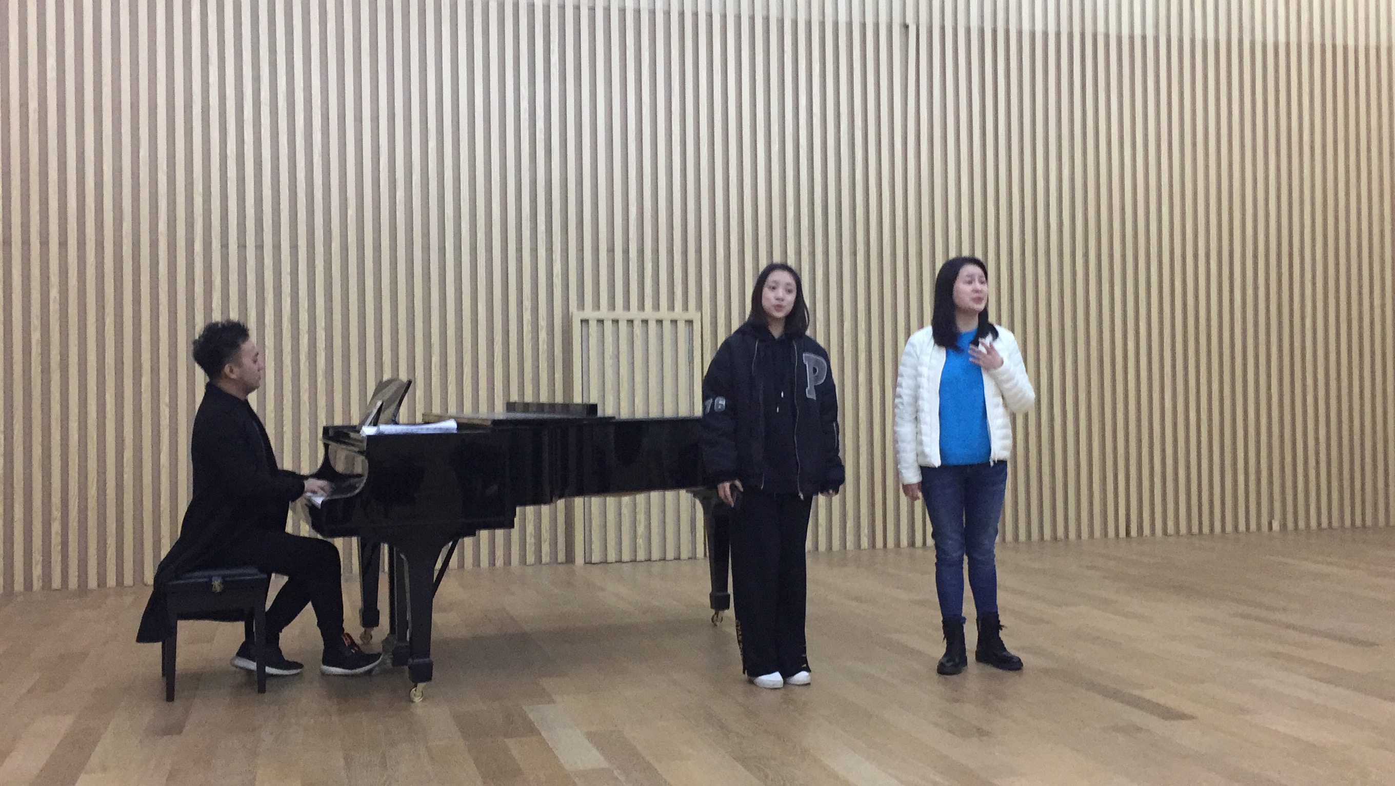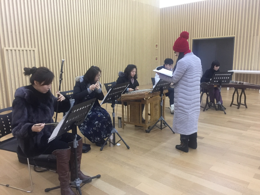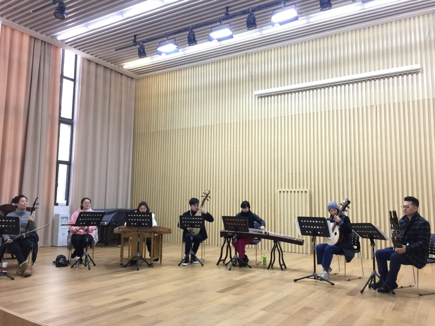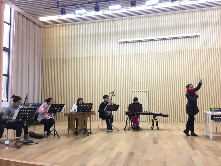 连日来,学院国乐系CB215排练厅异常热闹。不时传来越剧《西园记•闺誓》的伴奏与清亮的嗓音,戏剧系教师、“梅花奖”得主陈晓红老师正耐心地向大家讲述这一唱段的故事,承担伴奏的师生们仔细聆听、细心揣摩主人翁的心理以及场景;国乐系杨磊老师,手捧键笙颇有“笙箫吹断水云间”之势,以浑厚饱满的音色,鲜明的节奏,将《阿细欢歌》中描绘出节日里的阿奇人载歌载舞的热烈情况逐步呈现;国乐系刘乐老师“指舞绝色音”,将中国传统古典舞“水袖”在乐音间呈现,可称得上是“空山凝云颓不流”;国乐系韩慧慧同学的笛声远传,可悠扬动人,予人“妙竹嘉音际会逢”之感,《敦煌新语》中可似羌笛般沧桑有力,悠悠然,《三五七》中却流淌着婺剧乱弹唱腔的洒脱……进入寒假后,这一场景时常在排练厅上演,这是学院师生为赴美国参加2018“欢乐春节”交流演出在排练。为了将更精彩的节目呈现,在排练厅,老师和同学们冒着低温严寒,积极投入到紧张的排练中。排练过程中,师生们发扬事必尽善的精神,克服种种困难,认真专注,对每个动作、每个音调都严格要求。